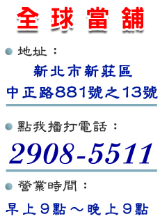 2.利息(以當舖法規定為準) : 月息最低1%~最高2.5%[年利率最低12%最高30%] (提早結清以日計算,無違約金)